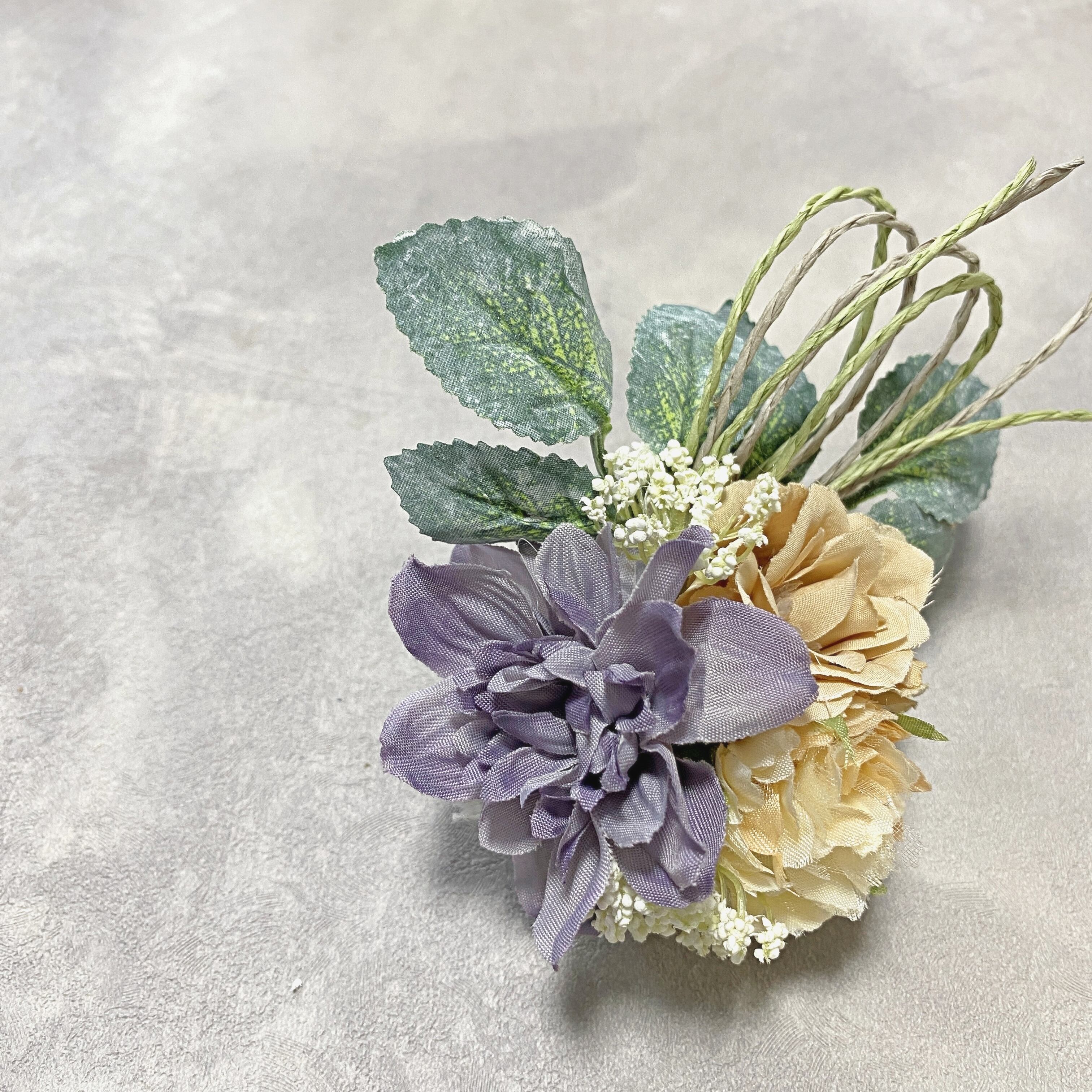 商品名:ナチュラル コサージュ くすみカラー ダリア ベージュ 紫
