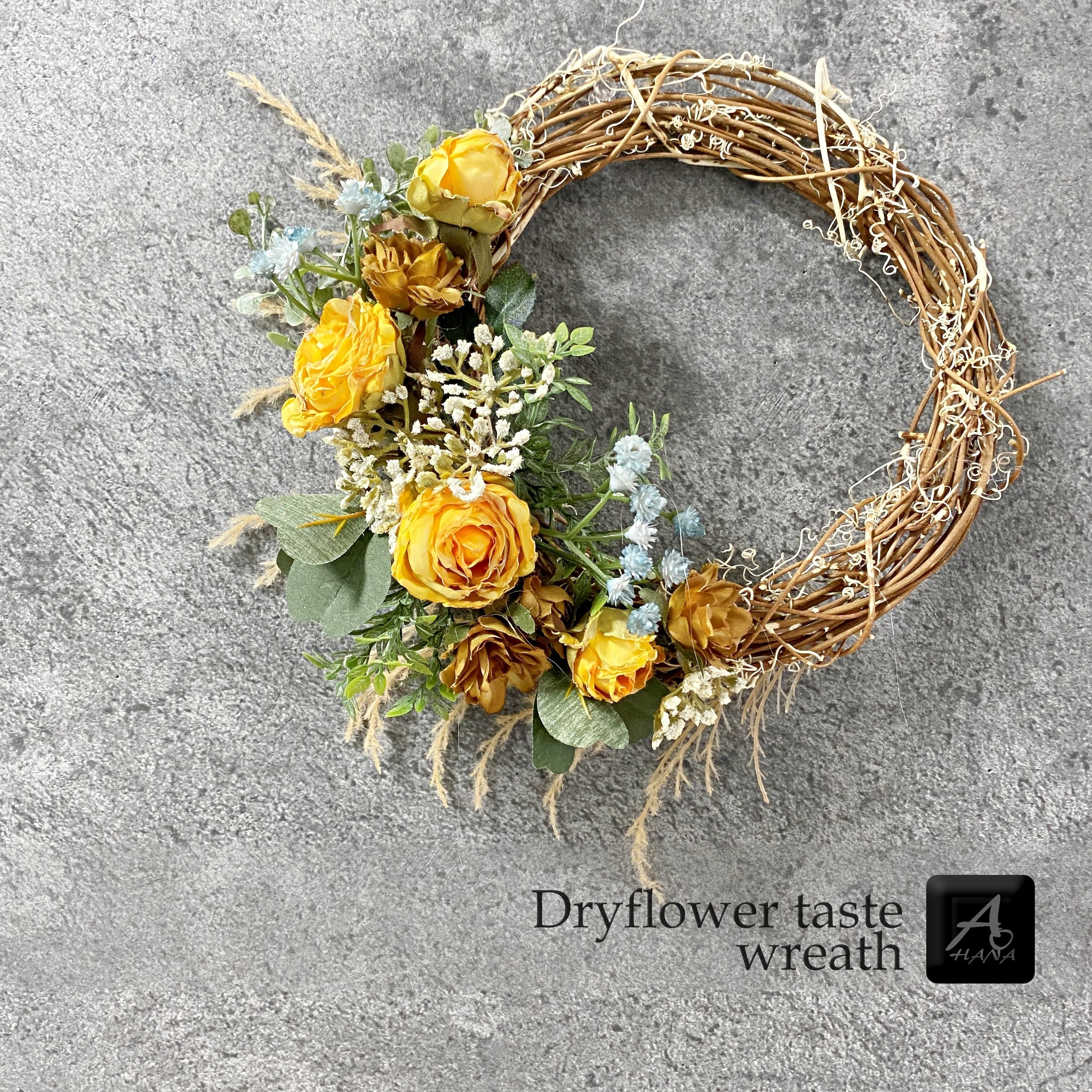 ドライフラワー風 wreath リース yellow rose (R00049)