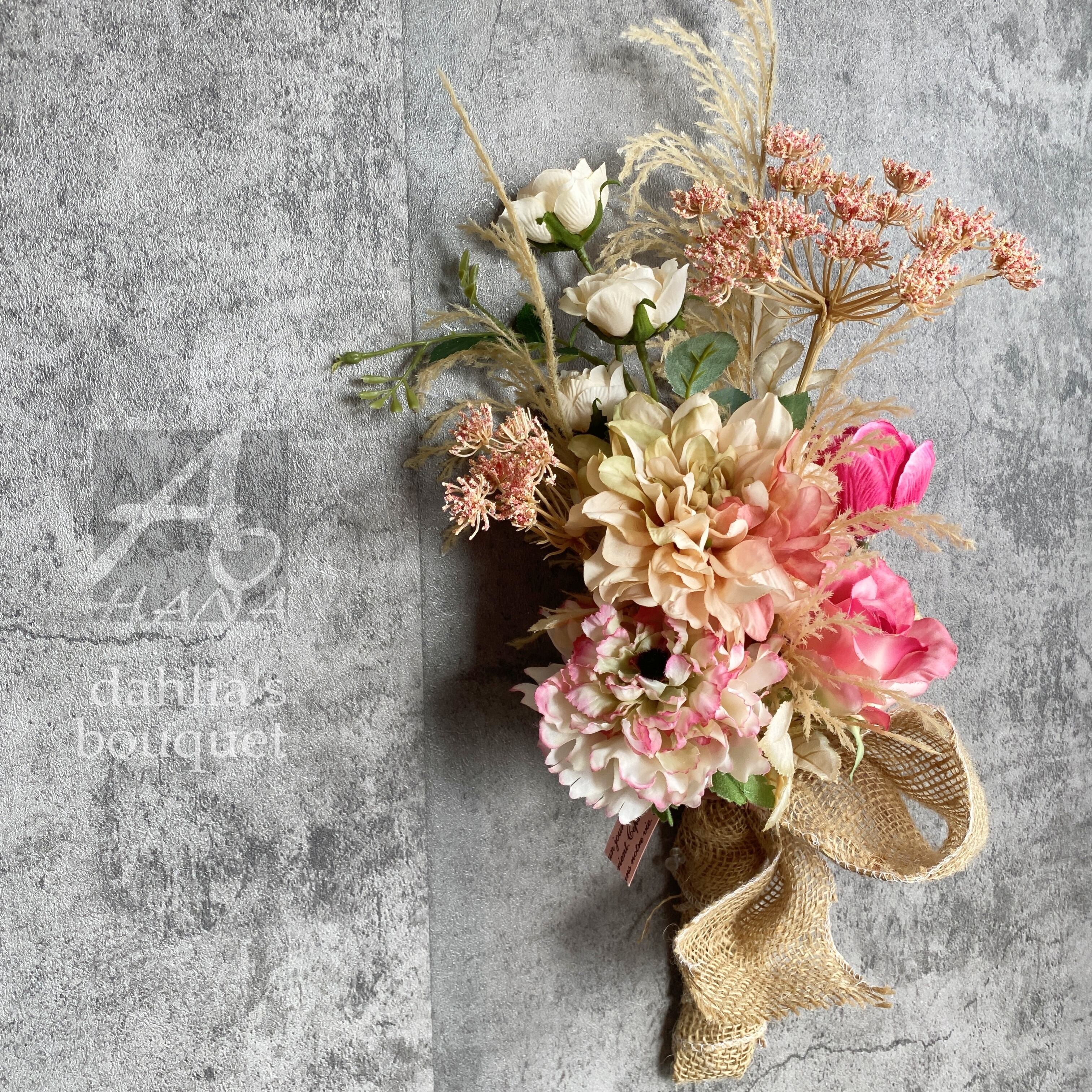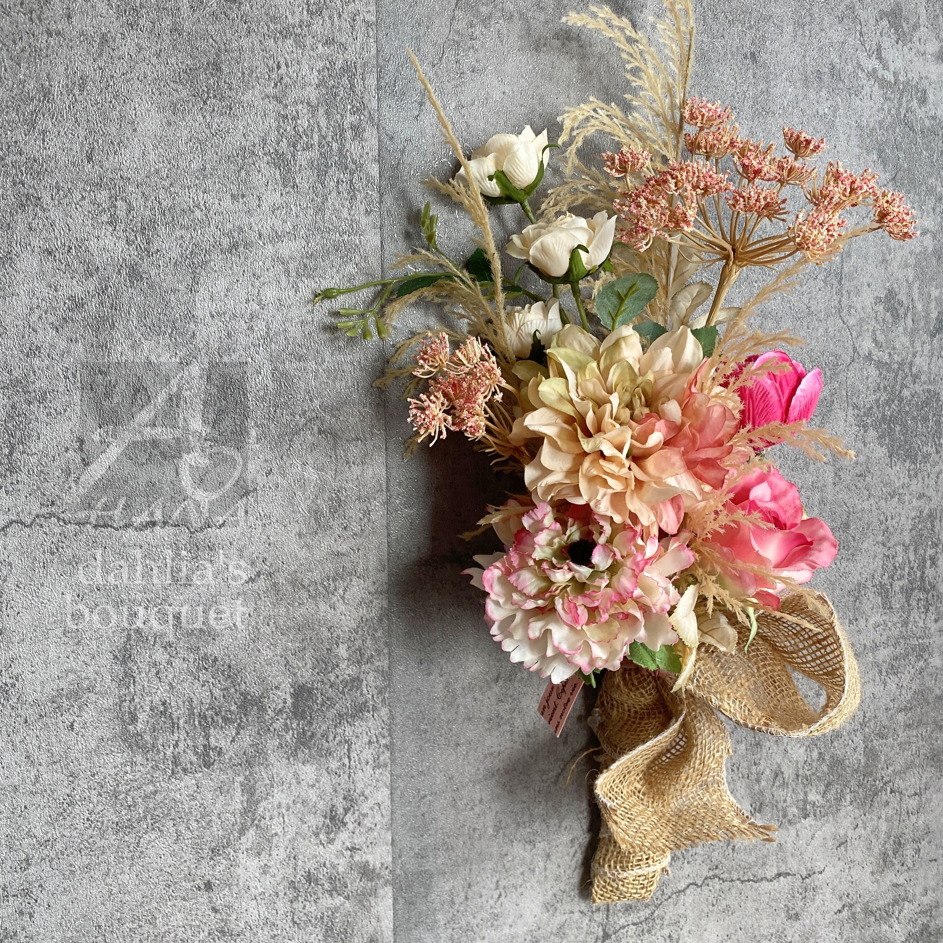 商品名:ドライフラワー風ブーケ スワッグ ピンク ウェディングブーケ
