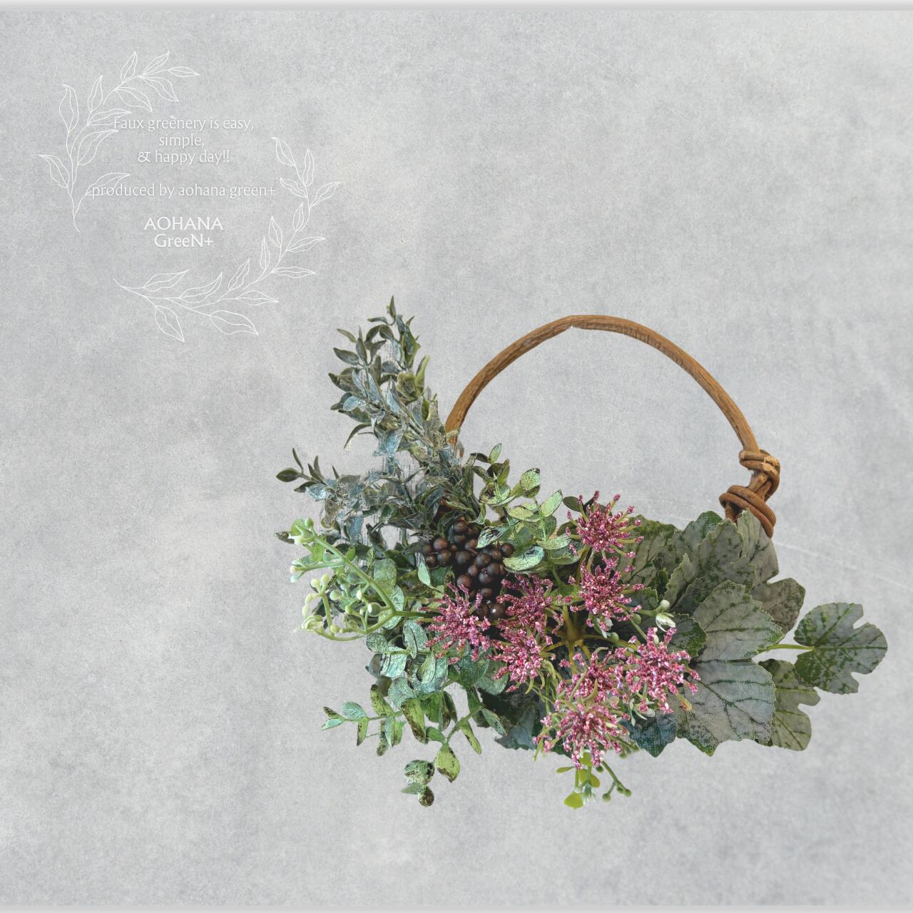使用花材:造花(ユーカリ・ベゴニアリーフ・ベリー・レースフラワー)
