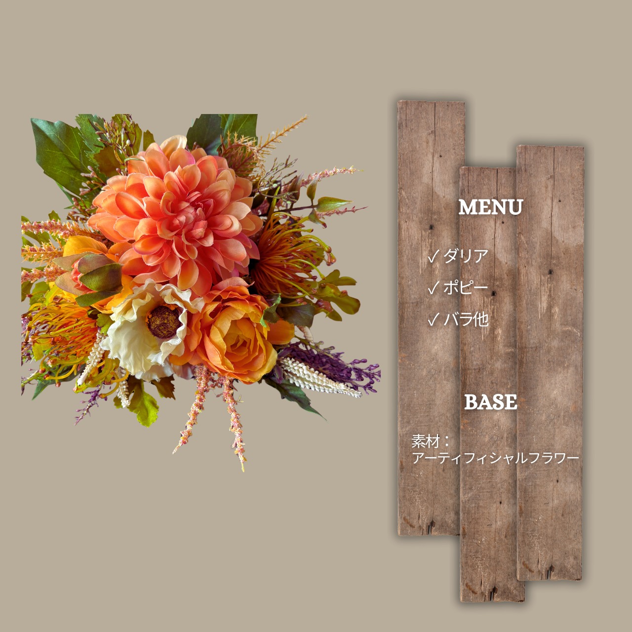 * 使用花材:アーティフィシャルフラワー(ダリア・ポピー・バラ他)