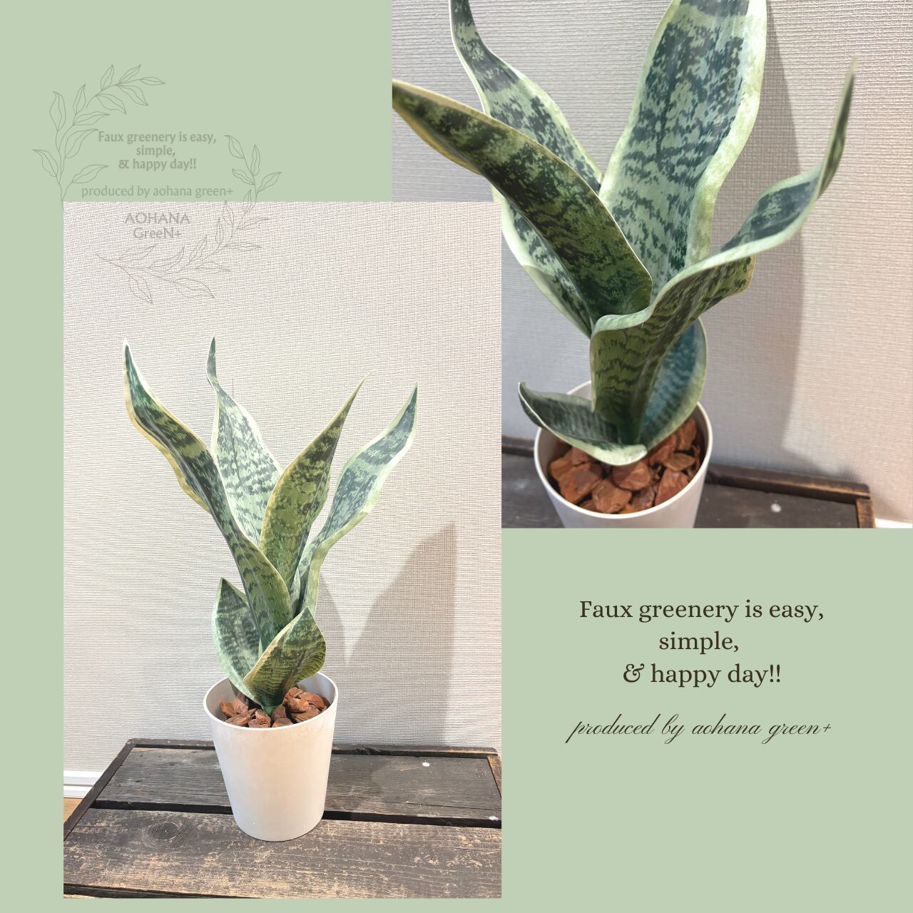 フェイクグリーンポット サンスベリア スネークプラント Snake Plant Pot 光触媒OK カフェ風インテリア