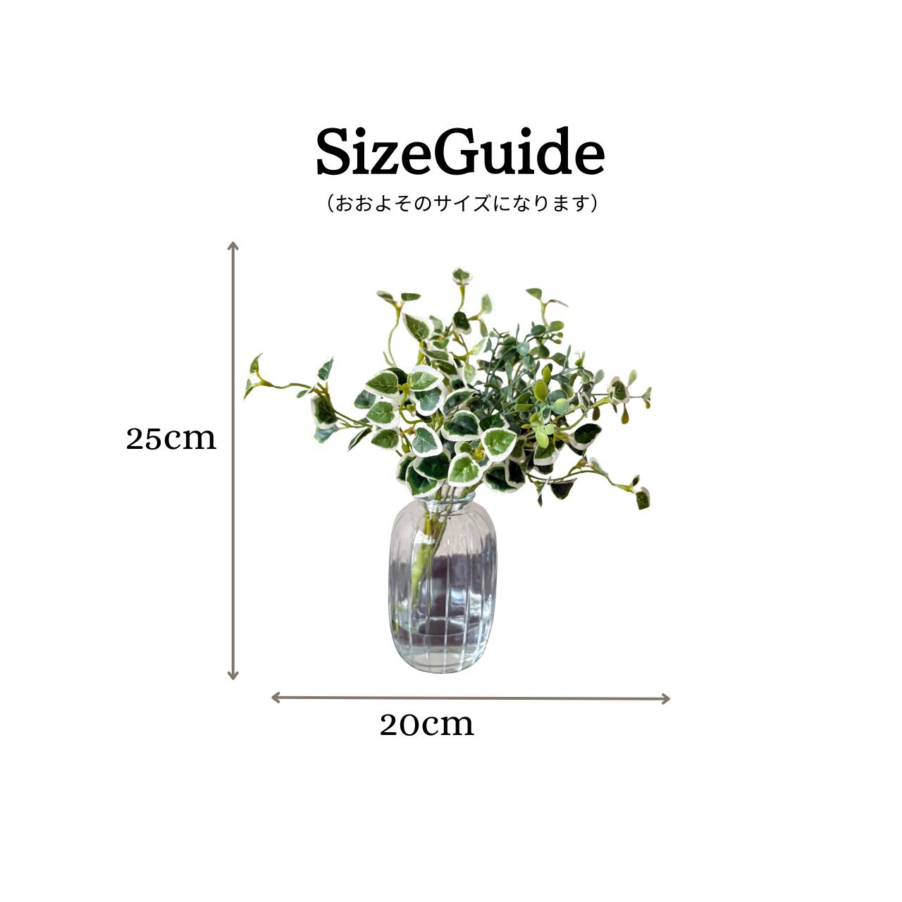 :葉先まで含めた最大サイズ:幅20cm×奥行18cm×高さ25cm