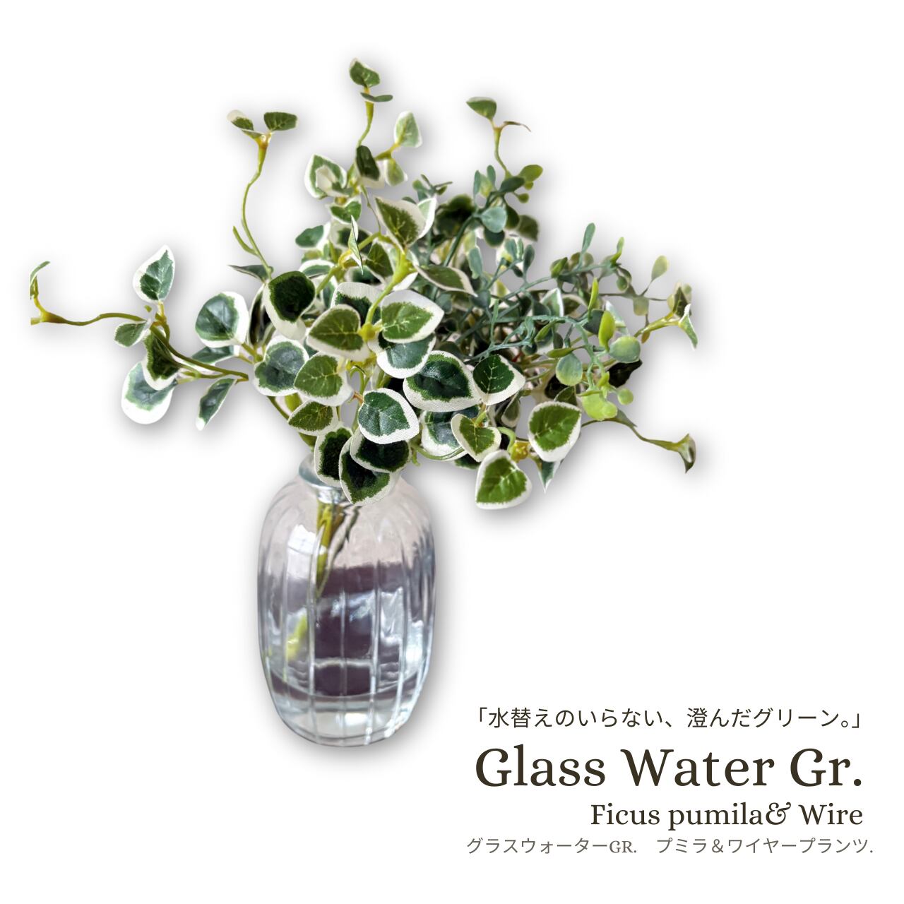 フェイクグリーン 水替え不要|ガラスベース プミラ&ワイヤープランツ Glass Water Gr.