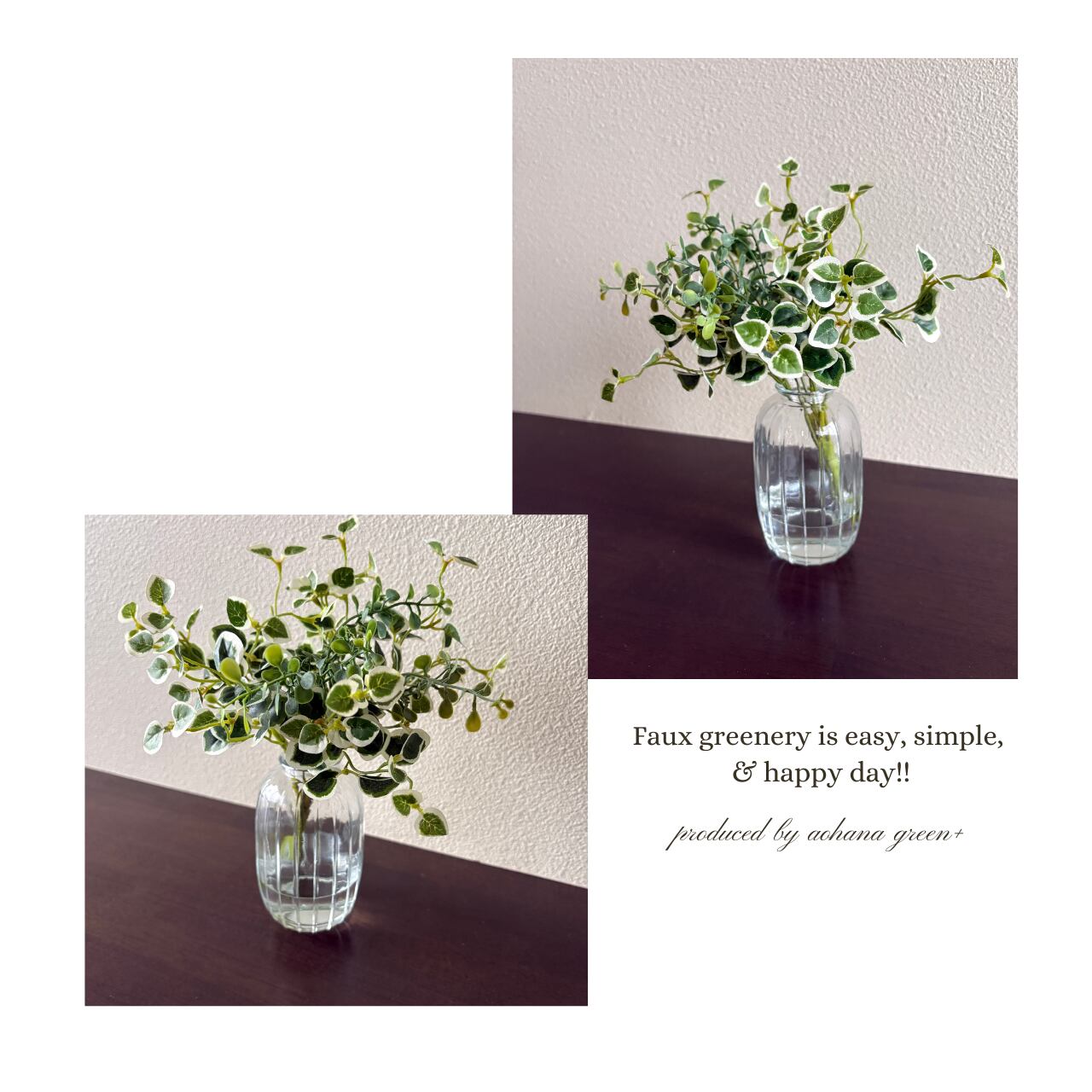 フェイクグリーンと組み合わせることで、「水のある癒しの風景」を手間なく取り入れられるのが特徴です。