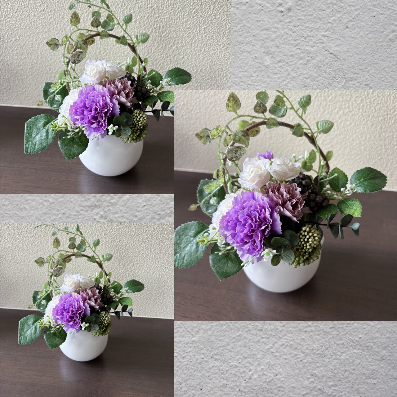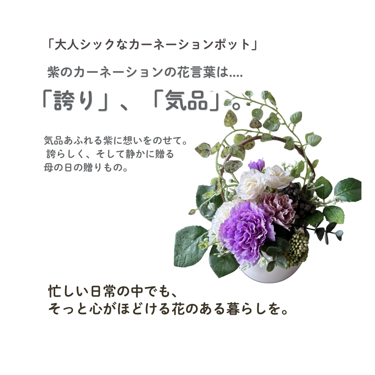 #アンティークパープルカーネーション #アーチタイプ #紫カーネーション #造花アレンジ #母の日ギフト #フェイクフラワー #花のある暮らし #アンティーク雑貨風 #インテリアフラワー #気品のある贈り物 #白いポット #ナチュラルインテリア #癒しの空間 #枯れない花 #ギフトにおすすめ